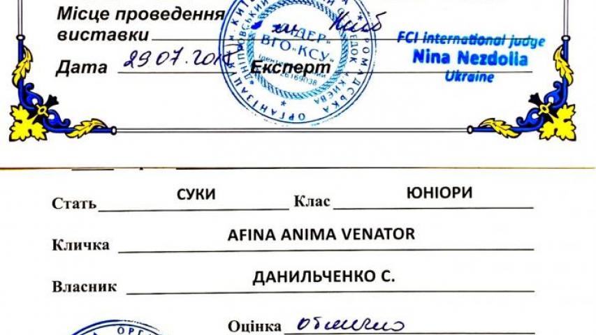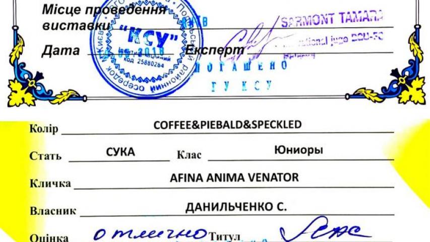 J.САСХ3, Junior Champion in Ukraine.