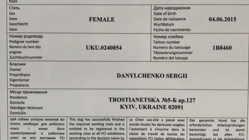 Страна происхождения: Украина, город (место нахождения собаки): г.Киев