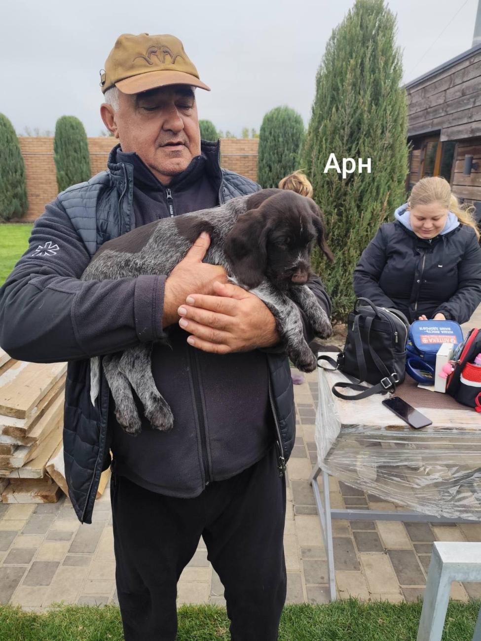 Друзі, доброго дня. У розпліднику моїх друзів Vom Thortal народились цуценята німецького дратхаара. Вільні 1 дівчинка і 4 хлопчики. Батько і мама цуценят чистокровні німці, мають хороший родовід, хороші робочі якості та екстер’єр.